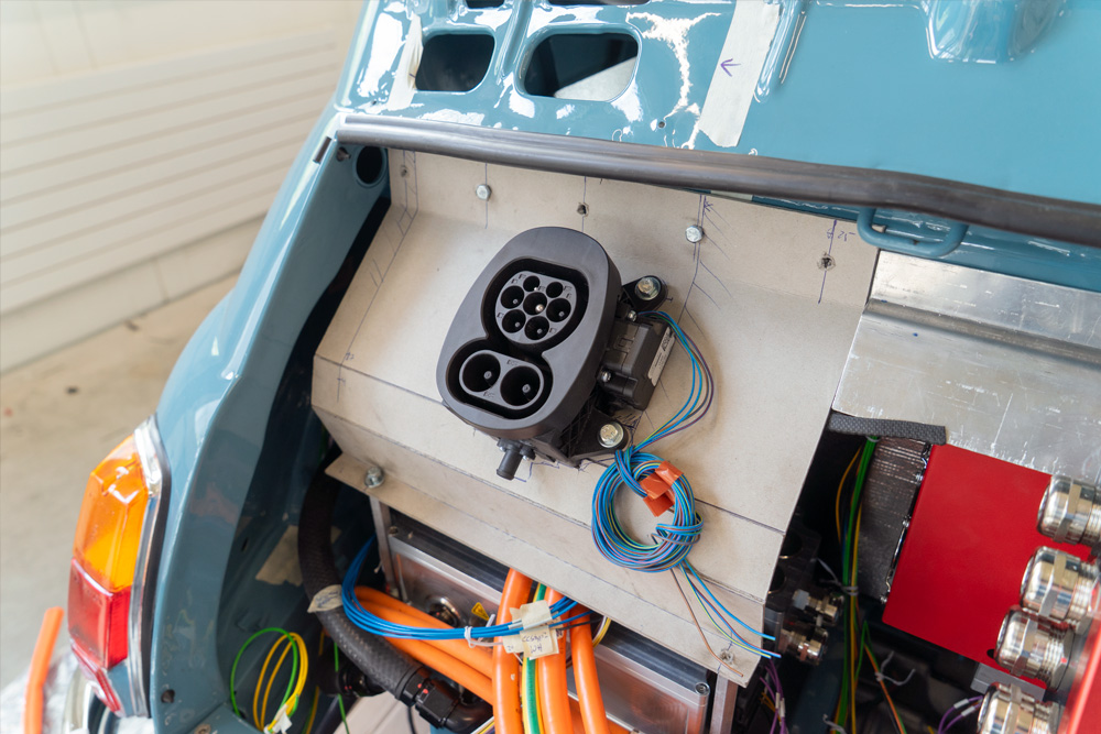 Ganz so einfach ist das dann aber oft doch nicht. Manchmal gibt es nämlich gar keine Tankklappe. Dies war sowohl beim DeLorean als auch beim Fiat 500 der Fall. Bei beiden muss man zum Tanken die Fronthaube öffnen. Was beim Tanken noch halbwegs praktikabel ist, ist beim Laden dann doch nicht ganz optimal. Also musste eine neue Lösung her.