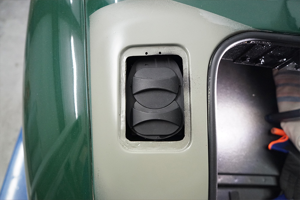 Naheliegend, und auch ab und an bei Umbauten gesehen, ist das Verstecken der Ladeklappe unter dem Nummernschild. Wir haben uns bei beiden Projekten jedoch gegen diesen Ansatz entschieden. Aus Komfort-Gründen. Dadurch wäre die Ladedose ziemlich weit unten, und wenig bequem zu erreichen.
